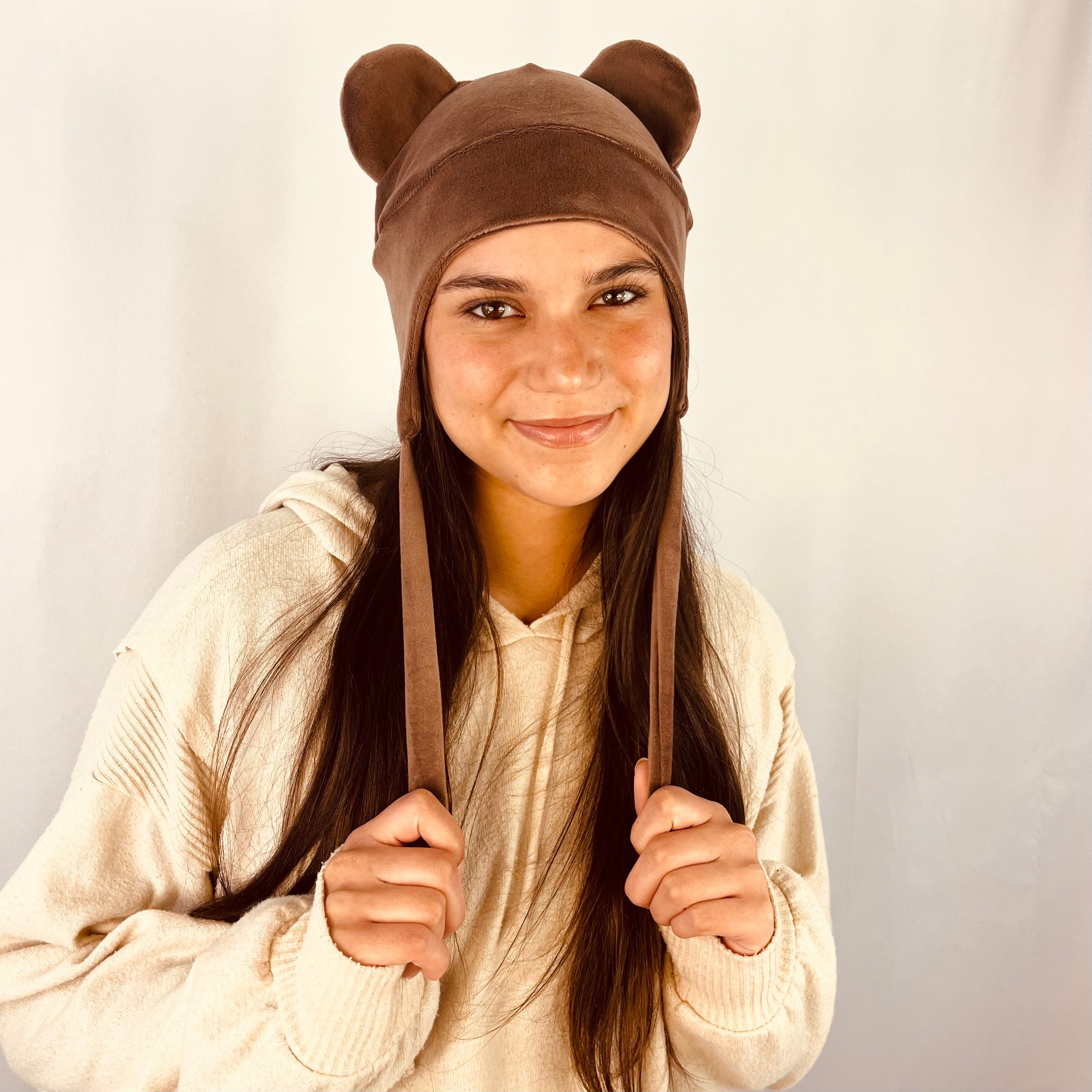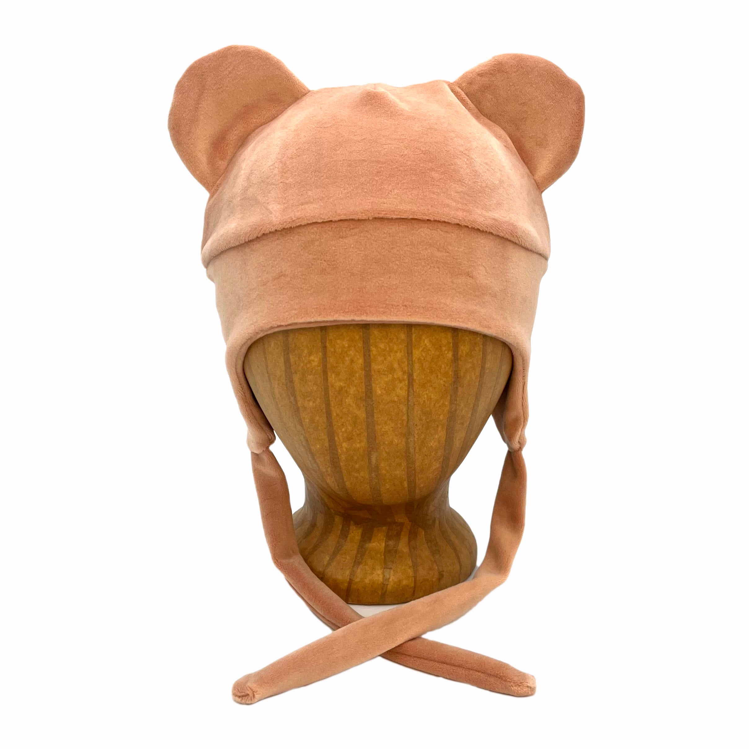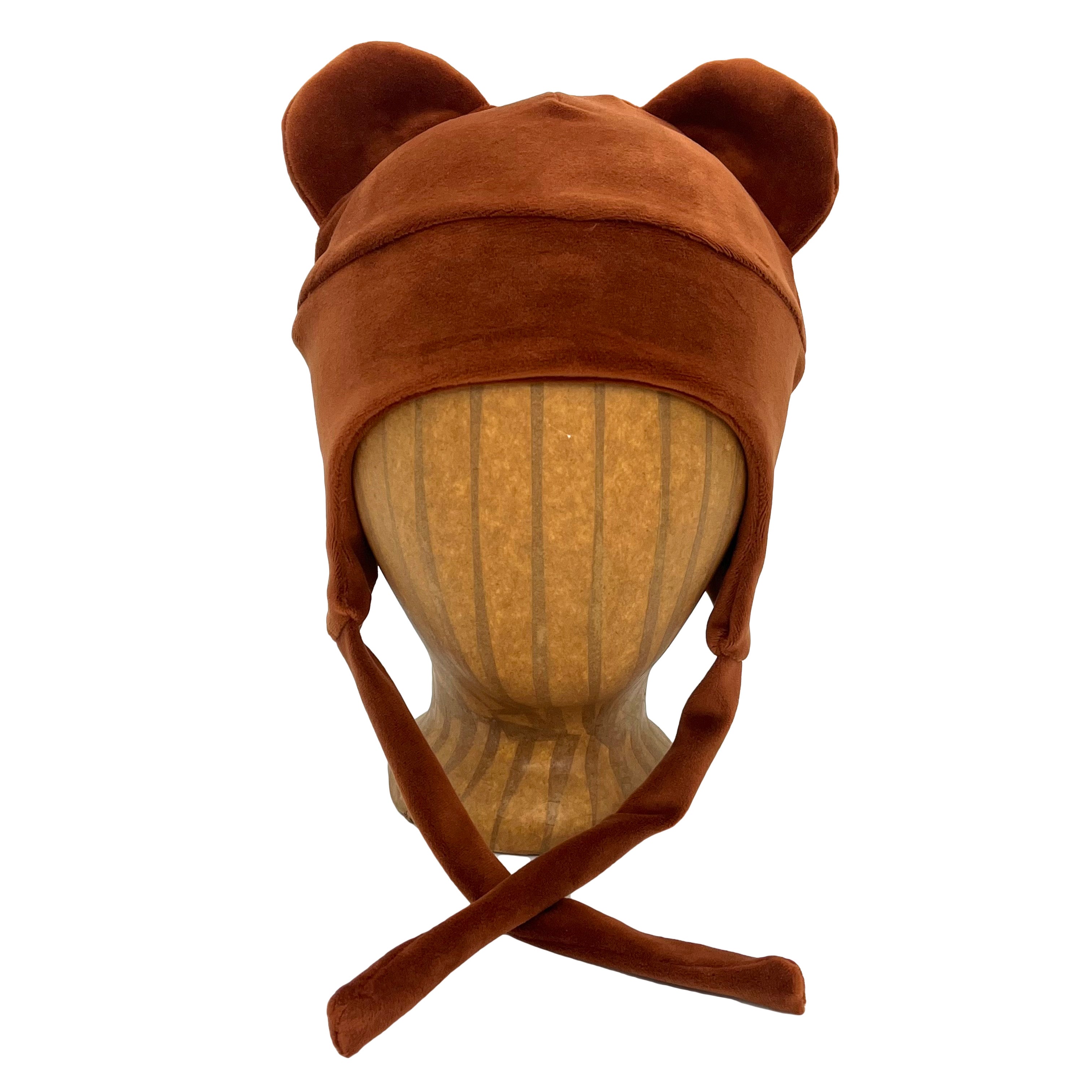 This may be the softest hat on the face of the earth! We tried to make a hat that was cozy, warm and fun for kids and adults. The velvet fabric is so stretchy that even adults can wear it. Anyone want to match their kids? Have some fun with your kids with our sustainably made Teddy hat. Your little ones will want to embody animal energy while the ear flaps and chin ties keep the hat on and their heads warm.